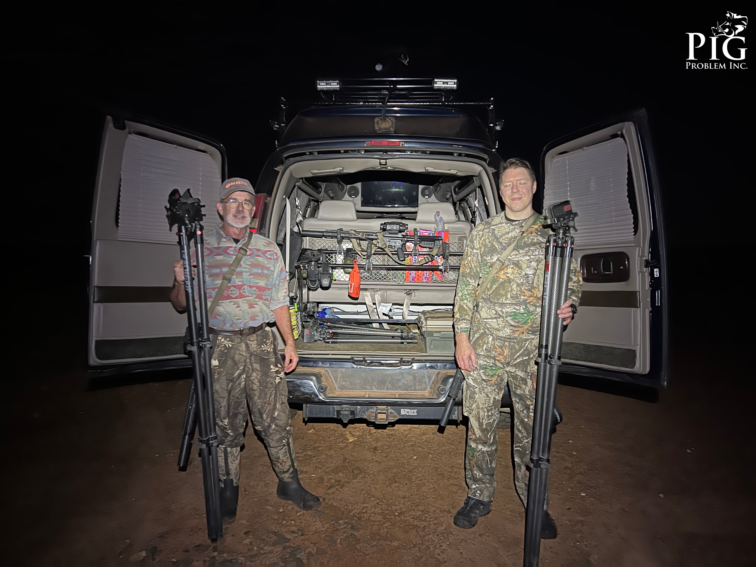 For this hunt, two vans went out—one led by Guide Clayton and the other by Guide Hank—each with a group of five hunters experiencing their first Thermal Night Hunt.