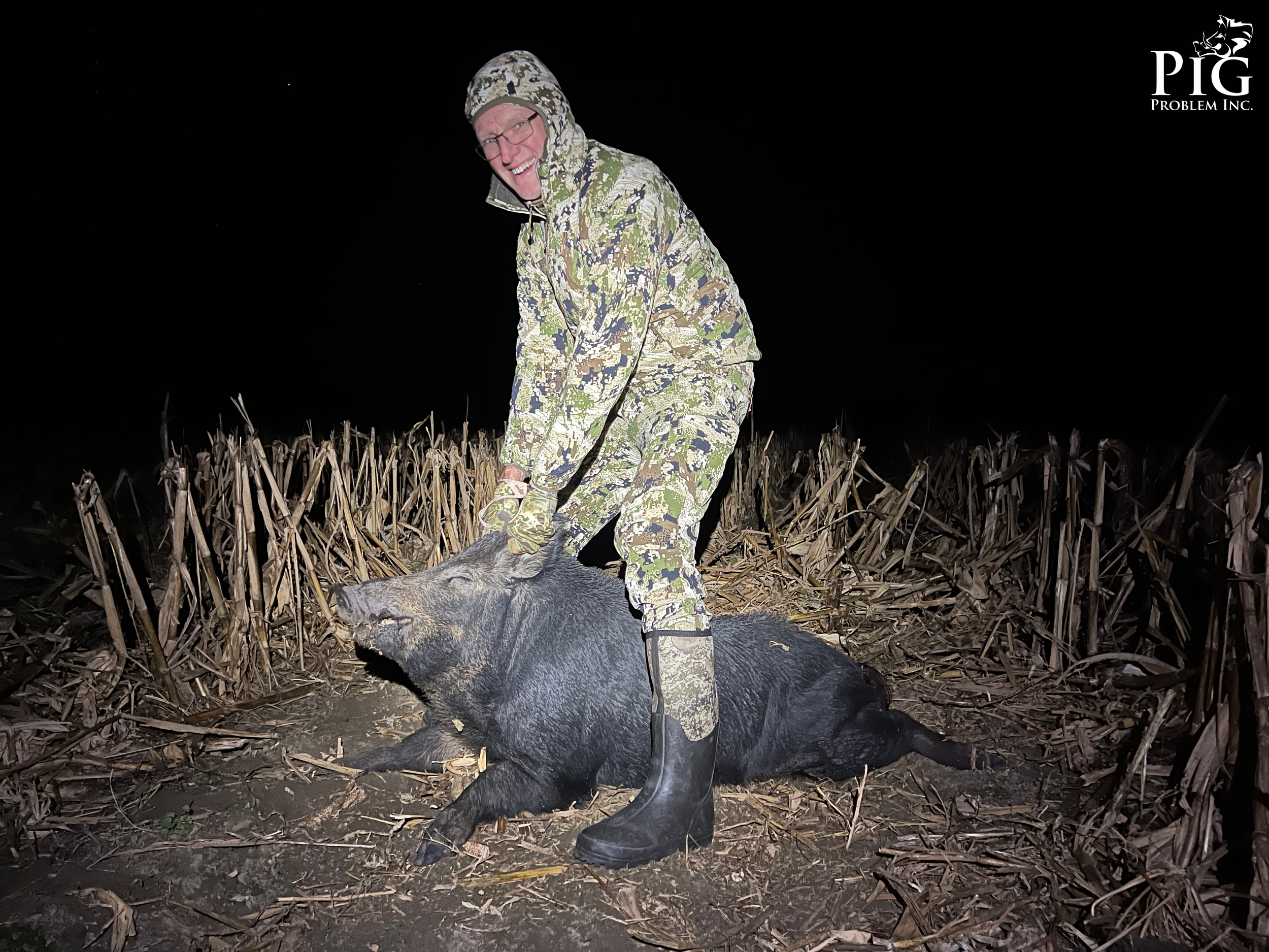 Clayton’s group covered multiple fields throughout the night. Activity was light, but patience paid off. In the final field of the night, the team spotted a lone hog and made a clean stalk to drop it. It was a quiet but rewarding start for the group’s first night.